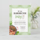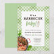 Nosso convite de chá de bebê com tema de churrasco gingado verde rústico moderno é projetado com um fundo gingado, uma grelha ilustrada, uma combinação de tipografia lúdica em negrito e manuscrita, combinada com folhagens e uma mamadeira. Este convite é perfeito para uma celebração de festa ao ar livre no quintal de trás no verão.