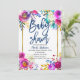 Convite Chá de Bebê Script Azul Floral Aquarela Negrito