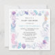 Convite de chá de bebê sereia aquarela sob o mar adorável. O design feminino apresenta uma sereia, criaturas sob o mar, conchas e coral em estilo aquarela.