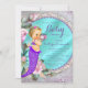 Convite de chá de bebê da sereia com adorável bebê sereia com tiara de diamante e pérola em um lindo fundo floral de lavanda e azul aqua brilhante. Este convite de chá de bebê de sereia é facilmente personalizado para o seu evento, basta adicionar seus detalhes no estilo de letra, cor e texto de sua escolha. Este é um design impresso sem jóias reais, laços, brilho, etc.