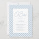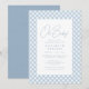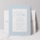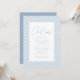 Um clássico xadrez azul emoldura este convite de chá de bebê doce e simples. Com texto personalizável, este convite de chá de bebê xadrez é perfeito para celebrar um menino a caminho. A parte de trás é um azul coordenado com pontos brancos. Suprimentos para festa de chá de bebê combinando também disponíveis na coleção de Lea Delaveris Design!