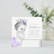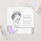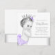 Convite de chá de bebê roxo lavanda e prata. Este convite de chá de bebê da princesa roxa é facilmente personalizado para o seu evento, bastando clicar no botão "Personalize!" para começar a adicionar os detalhes do evento, estilo de letra, tamanho e cor da letra e texto. Por favor, note que todos os adesivos, cartões e convites que você encontrará na Zazzle são gráficos impressos sem joias, laços, relevos, ou peças ou partes adicionais.
