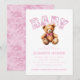 Convite Chá de Bebê Teddy Bear Rosa Preppy Varsity