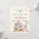 Toda criança adora ler, independente do sexo! Abasteça a biblioteca de um bebê em um chá de bebê "traga-um-livro". Adicione instruções para trazer um livro para a festa com esses convites de chá "Storybook"! Você também pode usar esses convites para convidar os convidados para um chá de bebê realizado em uma livraria, biblioteca ou sua casa! Perfeito para os futuros pais que são professores, bibliotecários ou amantes de livros, que adoram ler! O design moderno com um toque retrô apresenta uma pilha de livros com uma xícara de chá em cima e um ursinho de pelúcia rosa ao lado - perfeito para um chá de bebê de menina! O texto em tipografia manuscrita e script é totalmente editável clicando no botão "Personalizar".