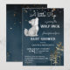 Modelo de convite de chá de bebê temático de lobo pequeno para download instantâneo, adorável filhote de lobo com fundo de noite estrelada escura.