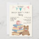 Toda criança adora ler, independente do seu gênero! Abasteça a biblioteca de um bebê em um chá de bebê "traga-um-livro". Adicione instruções para trazer um livro para a festa com esses convites de chá "A Primeira Biblioteca do Bebê"! Você também pode usar esses convites para convidar os convidados para um chá de bebê realizado em uma livraria ou biblioteca ou em sua casa! Perfeito para futuros pais que são professores, bibliotecários ou amantes de livros, que adoram ler! O design moderno com um toque vintage apresenta uma pilha de livros com uma xícara de chá em cima e um ursinho ao lado, tudo em cores naturais pastéis. Perfeito para um chá de bebê neutro, menino ou menina! O texto em tipografia manuscrita e script é totalmente editável clicando no botão "Personalizar".