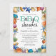 Convite de chá de bebê de casal com tema de churrasco costeiro de verão, apresentando um fundo branco elegante que pode ser alterado para qualquer cor, estrelas-do-mar e conchas coloridas, e um modelo de celebração de chá de bebê de casal que é fácil de personalizar.