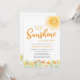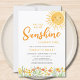 Este convite de chá de bebê adorável apresenta "Um pequeno raio de sol está quase aqui!" em tipografia estilosa, acompanhado por um sol em aquarela e flores silvestres.