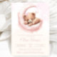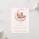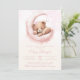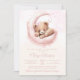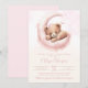 Convite de chá de bebê de ursinha com uma adorável ursinha bebê com laço fofo em um fundo de lua sonhadora. Este convite de chá de bebê ursinho é facilmente personalizado com as informações do seu evento.