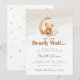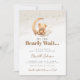 Celebre a futura mamãe com esses convites de chá de bebê modernos e neutros com tema de urso teddy "mal podemos esperar". Personalize com seus próprios detalhes.