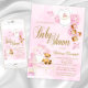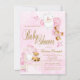 Convite Chá de Bebê Urso Teddy Rosa Dourado Menina