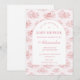 Celebre um chá de bebê atemporal e romântico com este elegante design de toile rosa, apresentando delicadas ilustrações vintage da zona rural em tons suaves de rosa. O layout de arco refinado cria um belo ponto focal para os detalhes do seu evento, misturando charme europeu clássico com uma estética moderna e feminina. Perfeito para uma celebração chic e inspirada em contos de fadas, este design parece ao mesmo tempo gracioso e sofisticado sem esforço — ideal para criar uma reunião memorável e elegante.