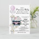 Convite de chá de bebê virtual com adorável elefante de bebê menina em uma caixa de correio coberta de flores e balões e fundo charmoso em aquarela. Este convite de chá de bebê de elefante menina é facilmente personalizado para o seu evento.