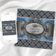 Convite de chá de bebê xadrez azul e cinza. Este convite de chá de bebê preto, cinza e azul é facilmente personalizado para o seu evento, basta adicionar os detalhes do evento, estilo de letra, tamanho e cor da fonte, e texto.