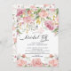Linda cor-de-água pincel pincelado pincel de chá convite com uma letra escrita escrita escrita à mão e coordenação de trás floral.