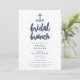 Simples e doce, esta âncora náutica azul com convite para design de flores é perfeita para convidar amigos e família a chá da noiva em seu chá de panela.