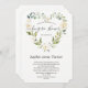 Design moderno e elegante, com flores brancas, creme aquáticas em forma de coração, caligrafia de "chá lingerie" de tendências; no buquê floral traseiro, nome da noiva, flores. Use a ferramenta Personalizar para adicionar suas informações e fazer alterações. Para obter itens correspondentes, visite minha coleção de flores brancas delicadas.