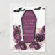 Você vai adorar essas flores roxas e caixões de folha prateada com morcegos pretos assustadores. Vinculando convites para corresponder.