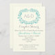 Aqua foliage frame monograma casais de casamento convite para chá com iniciais com um quadro azul aqua feito de folhas e texto em cinza de marfim. Este modelo floral, na moda e elegante monograma é uma parte totalmente personalizável de um design de casamento perfeito para o seu casamento de verão.