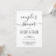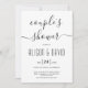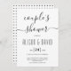 Convite de chá de casais de casamento para caligrafia cursiva. O dorso inclui um padrão geométrico preto e branco.