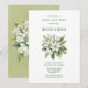 Espero que gostem destas flores botânicas brancas com folhas verdes e um fundo de textura aquosa verde. Convites e suprimentos de festa de casamento correspondentes estão disponíveis neste conjunto de coleções.