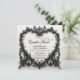 Celebre o seu amor na grandiosidade do romance gótico com o nosso convite para o chá de casamento dos casais cativantes. Adote a alura escura e a elegância do eterno com nossa estrutura cardíaca tridimensional preta, envolvendo texto negro em negrito contra um fundo branco pristino. Esse convite expele um encanto misterioso, com um ar de sofisticação dramática. Os detalhes intrincados da estrutura cardíaca em filigrana adicionam profundidade e textura, criando um ponto focal mesmerizante que captura a essência da sua história de amor única. Como último toque de personalização, a parte de trás do convite apresenta o mesmo encantador quadro cardíaco filigre atrás de um par acoplado de corvos, acrescentando um toque sutil, mas significativo a essa obra-prima gótica. Deixe o seu convite dar a palco de uma celebração que é inesquecível. Criado pela imprensa simplesmente de farmácia.