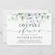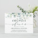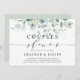 Este convite para chás apresenta cores aquáticas pintadas de eucalipto, verde botânico e folhas azuis-claras com caligrafia moderna. Para personalização mais avançada deste design, clique no link "Personalizar mais".