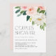 Convide convidados para o seu evento com este convite personalizável para chás de casais. Apresenta buquê floral de cor d'água de flores rosa e brancas e verde. Personalize este convite para chás de casais florais adicionando seus próprios detalhes de evento. Este convite para chás botânicos é perfeito para chás de primaveras e casais de jardim.