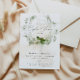 Este convite para chás apresenta uma aquarela de estilo vintage com uma coroa verde de ética e uma letra elegante de script. Este convite para chás de casais é perfeito para o seu belo evento de casamento temido no jardim. Par com qualquer coisa na