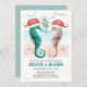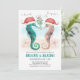 Temas costeiros casais convite para chás com cavalos de aquarela em Papai Noel beijando com névoa em uma praia tropical. Perfeito para as comemorações do inverno e do Natal. Arte da KL Stock.