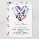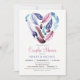 Boho casal de penas gicas chá/chá de casamento. Convidar apresenta penas violetas roxas, azuis e cor-de-rosa em forma cardíaca e padrão personalizado de volta.