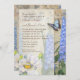 O Chá de panela de Correspondência Convide isso é perfeito para o amante da natureza que está planejando um tema de chá de casamento ao ar livre, ao estilo country, ao estilo jardim rústico, tem uma localização no celeiro ocidental ou simplesmente ama flores! DESIGN: O fundo e trabalho de arte de fronteira para este elegante, formal, mas um pouco rústico convite para o casamento é pintado manualmente por Audrey Jeanne Roberts. O fundo é um pergaminho de estilo de acabamento de estalos, vestidos e aflitos, envelhecido. Lindas torres de flores azuis profundas e delfinium alcançam o céu em várias tons de azul do céu para o martelo. Uma flor branca de papoila Matilija (muitas vezes chamada de "ovoflores fritas" ou "papoilas de flor de papel") foi pintada em aquarelas, ao vivo dos próprios jardins de Audrey Jeanne. Uma borboleta Morpho Azul paira sobre uma Dragonfly Damselfly que está descansando na papoila. No verso está a mesma imagem sem a aparência e borda semitransparentes do velo. Está disponível um conjunto de convites de casamento completo e correspondente para todas as suas necessidades de casamento, chá de panela ou outras ocasiões especiais e festas. SELEÇÃO DE COR: Este design apresenta curvas naturais, tons castanhos e tons beges com creme, branco, azul claro e azul-céu.