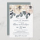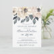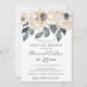 Convite moderno ao chá de casal de tendências, com belos creme de marfim e flores claras de dahlia, com cinzas escuras e folhas pintadas à mão e folhagem, e com um roteiro de tipografia manuscrito branco e cômico. ++++++++ Adequado para qualquer estação de jardim floral com cores aquáticas estilo moderno boho rústico ou romântico, após o casamento ou quaisquer outras festas e celebrações de casal.