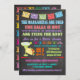 Chá bonito e colorido da Fiesta Mexicana Convites com banners brilhantes, tipografia divertida, uma grande margarita e taco em fundo de quadro. Então pegue uma bebida fria e salsa quente com este convite incrível. Ilustração desenhada à mão por McBooboo.