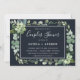Este convite para chás apresenta cores d'água suculentas, eucalipto e folhas verdes botânicas pintadas com uma estrutura retangular em fundo azul marinho da meia-noite. Itens correspondentes também estão disponíveis.