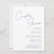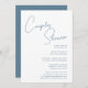 Cartão de Convite para Chás de Casais Quadrados com Script Quimísico Azul Dusty. Celebre o seu dia especial com esta elegante e bela carta de convite para casamento para embelezar a sua ocasião especial. Todos os textos estão pré-organizados para que você personalize fácil e rapidamente com seus próprios detalhes.
