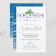 Celebre o amor com este convite de chá de lua de mel tropical azul oceânica. Apresentando sotaques de ondas costeiras, detalhes de palmeiras e tipografia elegante de guião, esta design captura a beleza de uma fuga à beira-mar. Uma nota refletida sobre a contribuição para o fundo da lua de mel do casal faz dele um alternativo moderno e na moda para os registros tradicionais. Perfeito para chás de destino, comemorações de casamento postado ou encontros de chic pela água. Personalize com seus próprios detalhes para criar uma manutenção inesquecível.