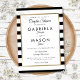Com um fundo clássico de listras pretas e brancas, este convite elegante de chá de casal tem uma borda com efeito de folha de ouro falso emoldurando os detalhes do seu chá de casal em tipografia moderna e sofisticada. Projetado por Thisisnotme©