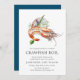 Um conjunto de convites de chá de casal com tema de boil de lagostim para o seu próximo churrasco ou festa relacionada a frutos do mar. Estes convites apresentam texto preto simples, juntamente com uma ilustração única de lagostim centralizada no topo. No verso do convite há um fundo Azul Oceano listrado. Todos os elementos deste convite são ajustáveis usando a função de personalização. Divirta-se adicionando seus próprios detalhes e tornando-o seu.