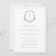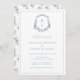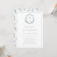 Convite para Chá de casamento Floral Blue Casal. Este convite romântico e na moda chá de casamento apresenta lindas flores azuis, poeirentas, pintadas manualmente, em uma crista | coroa com o monograma da noiva e do noivo. A parte traseira do convite inclui um padrão de capricho, mas pode ser facilmente apagada se preferir. Localize itens correspondentes na Coleção de Crest Monograma Azul Dusty.