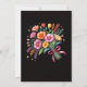Uma ilustração vibrante e estilizada do buquê floral que apresenta uma mistura de flores coloridas em tons de rosa, laranja, amarelo e vermelho. As flores são dispostas em composição animada e caprichosa, amarradas com uma fita de cetim rosa. As estrelas ouros são aspergidas ao redor do buquê, adicionando um toque mágico. Diante de um dramático fundo negro, esta design é perfeita para convites para casamentos, papelaria romântica ou arte digital com tema de celebração.