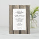 Convide seus convidados masculinos e femininos para uma pré-festa de casamento de co-ed honrando a noiva e o noivo para estarem com o charmoso Convite para Chás de casamento de madeira do país. Este convite para Jack e Jill, personalizados rústicos, apresenta uma fotografia de um tom de sépia questil de madeira salgada e cascavel. Inspo perfeito para o seu evento casual de celebração de festa ao estilo de fazenda.