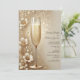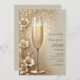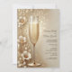 Um brinde ao amor por este luxuoso convite de chá de casamento de champanhe. Apresentando uma flauta de ouro cintilante, flores delicadas, com coloração de pérolas, e bolhas de champanhe brilhantes, esta design é perfeita para chás de panela elegantes ou celebrações de noivados. Os tons de ouro suave e detalhes românticos trazem sofisticação e brilho para o seu evento especial. Totalmente personalizável para se adequar à sua celebração.