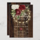 Chic do campo, iluminado com falso, coroa floral adornada com ricas, esbranquiçadas e vermelhas escuras a arrojadas, design de "Chá de casamento" floral luxuoso em um fundo de madeira falsa manchada com escuridão. Esta design rusticascompósita de madeira feita por Designs Holiday Hearts (direitos reservados).