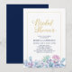 Celebre seu dia especial com este chá de panela na moda. Este design apresenta uma bela tipografia dourada e Suculenta padrões florais com cor azul marinho. Mais convites e material de festa estão disponíveis na minha loja BaraBomDesign.
