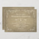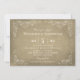 Este convite formal para chás de casamento com um design de estilo de etiqueta de vinho vintage. Esboços de folhas de videira feitos à mão, feitos à mão, enquadram os detalhes importantes. Um simples design florescido com a data do evento aparece no lado oposto. Esquema elegante e neutro de marfim e ouro de champanhe / cor castanho.
