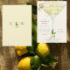 Convite para Chá de casamento Limoncello de Aquarela. Monograma atrás. Pode ser mudado para chá de panela. Elegante. Creme e amarelo.