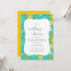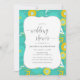 Convite para chá de casamento de temas Amarelo e Turquesa com tipografia de escrita manual concebida para ser rápida e facilmente personalizada de acordo com as especificações do seu evento.
