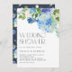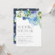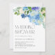 Convide convidados para o seu evento com este convite personalizável para chás de casamento florais. Apresenta buquê de aquarelas de hífenes azuis, rosas brancas e sotaques verdes. Personalize este convite de chá de casamento hydrangea adicionando nome, hora, data e outros detalhes do evento. Este chá de casamento botânico é perfeito para chás primaveras e casamentos no inverno. Estão disponíveis outras reservas de cartão.