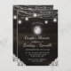 Madeira marrom-escura-escura-escura de Oak Ridge, Jars Mason cintilante, e Design de Luzes de Cordas brilhantes com faixas cintilantes de luzes e frascos balançando em uma textura rica em madeira profunda com sotaques brancos Lace. Com Fontes Modernas De Script De Tipografia. Um design de estilo rural elegante e rústico - Convites personalizados para Chás de Casais de Casamento! Veja meu compro para ver a suíte de casamento inteira para este design!